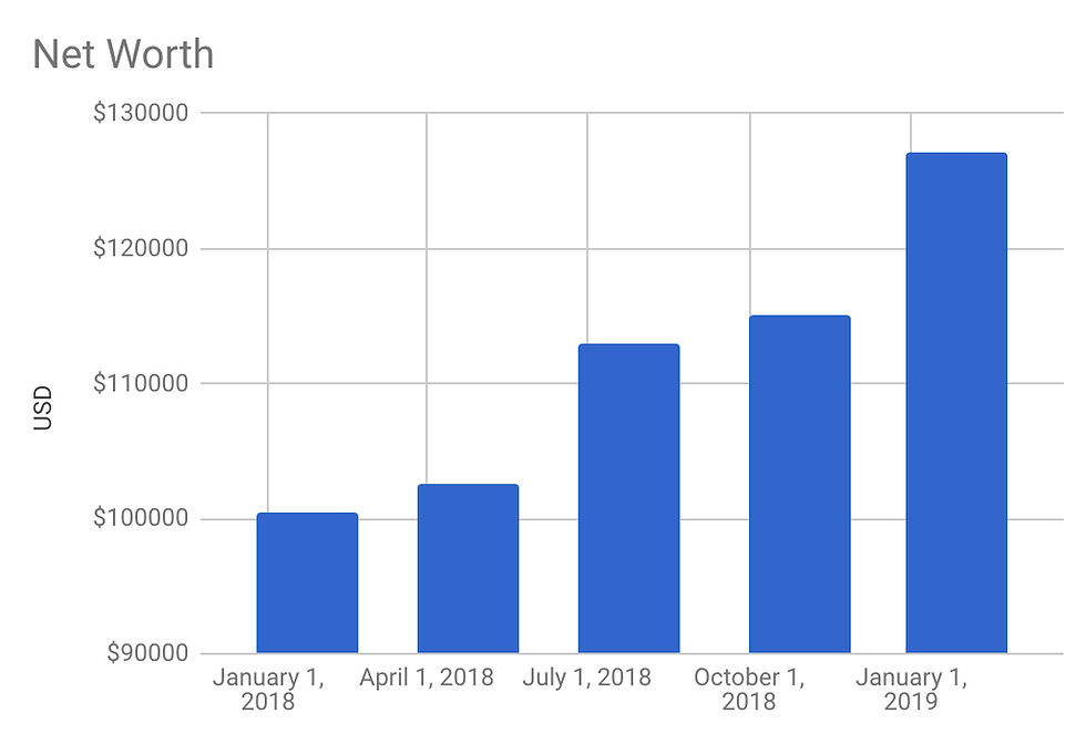 2018 was the first year I tracked my net worth. I did it right around when it crossed $100,000 for the first time, January 27, 2018, and then every quarter after that. There's good news and bad news.